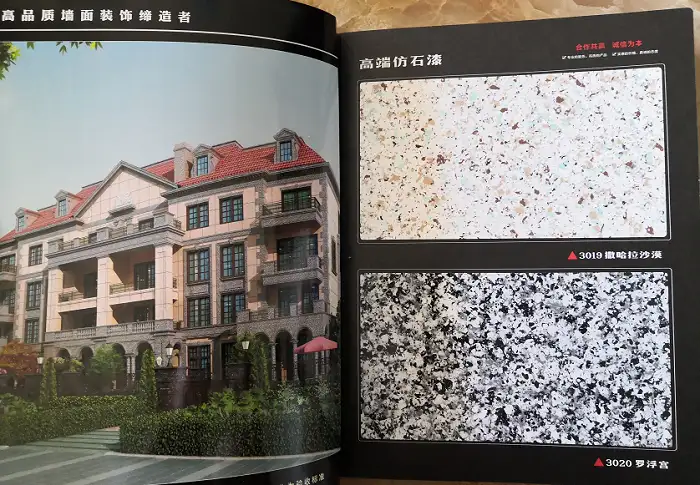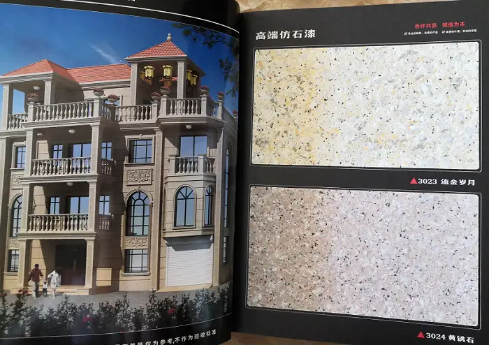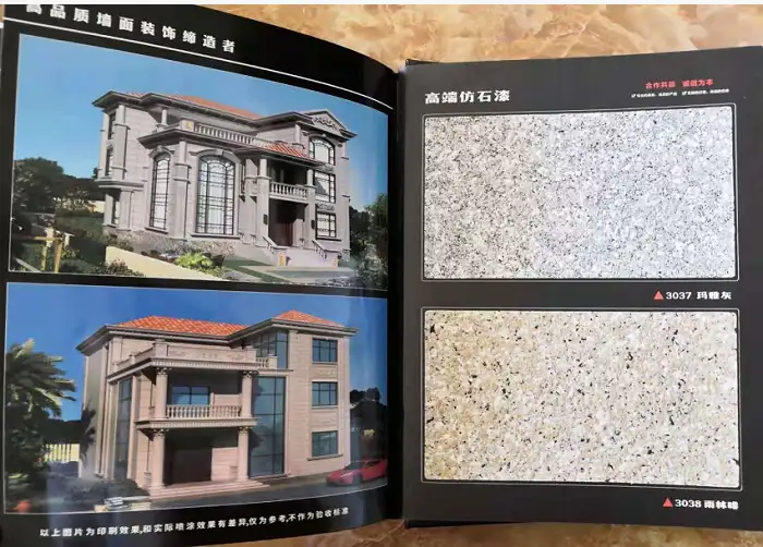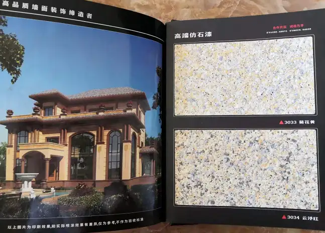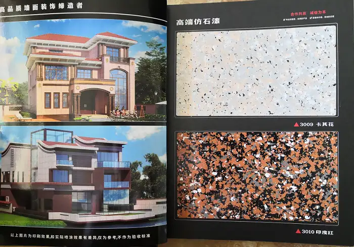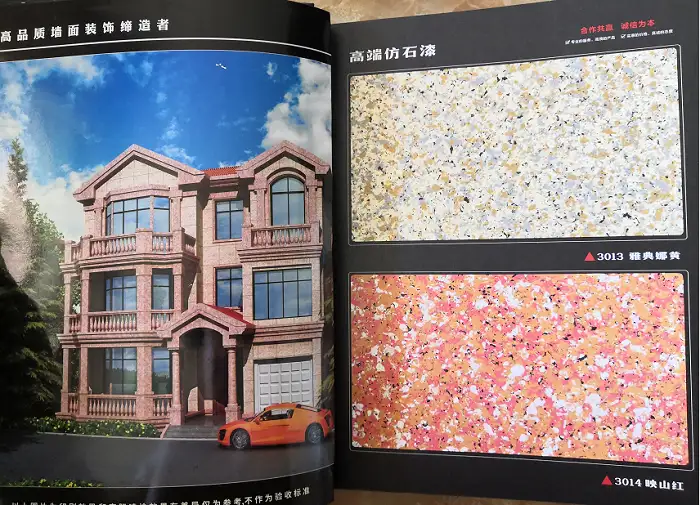 6D仿石漆打造著外墻涂料新革命,其以環保、美觀、獨特成為又一劃時代涂料新品,它具有凹凸紋理感,又融合了顏色豐富性,展現出多姿多彩的外墻造型,它是由水性硅丙乳液、結合彩色粒子包覆技術(膠體包裹色漿或天然彩砂)、以及各種功能性助劑結合而成。其工藝超越了傳統的水性涂料技術和工藝,擁有逼真的仿花崗巖、大理石等高檔石材火燒面效果,同時具有較好的耐候保色性和覆蓋墻體細微裂紋的功能。