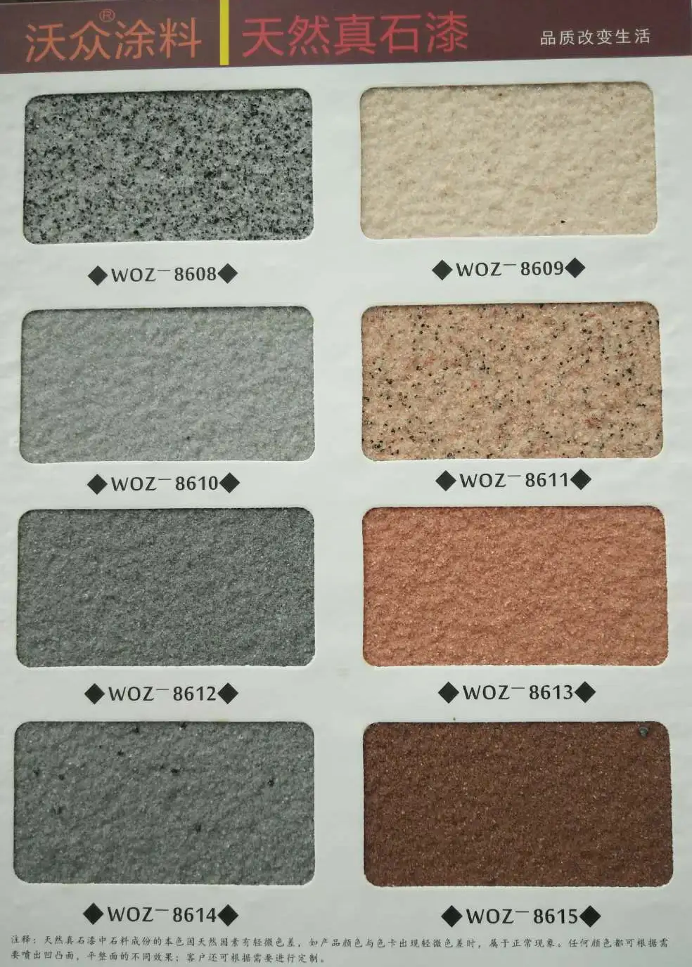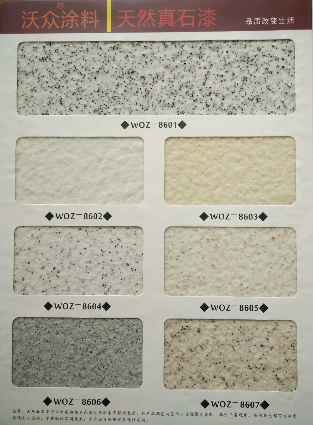 沃眾提醒:本品受天然石英砂的影響,不同批次之間會出現(xiàn)稍許的色差;訂貨應(yīng)詳細(xì)計算施工面積及漆用量,保證同一面墻作用同一批號產(chǎn)品。